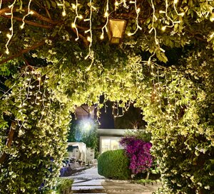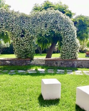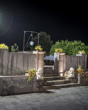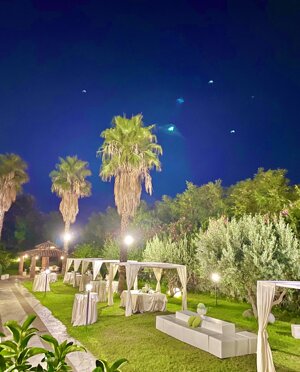 Ai piedi dell'Etna, a pochi chilometri dal porto Marina di Riposto, il giardino di Casa Modò tra fiori, palme e ulivi ospita gli eventi estivi in un contesto di clima mite, cielo stellato e bellezza naturale.