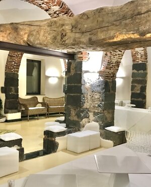 La grande tradizione vitivinicola in Sicilia è confermata proprio dalla presenza del palmento nelle antiche ville nobiliari: il luogo ove avveniva la pigiatura dell'uva per produrre il mosto che veniva riposto in grandi vasche. Costruito in pietra lavica su diversi livelli attraverso un'architettura rurale d'impatto, oggi è la cornice suggestiva per eventi e ricevimenti.